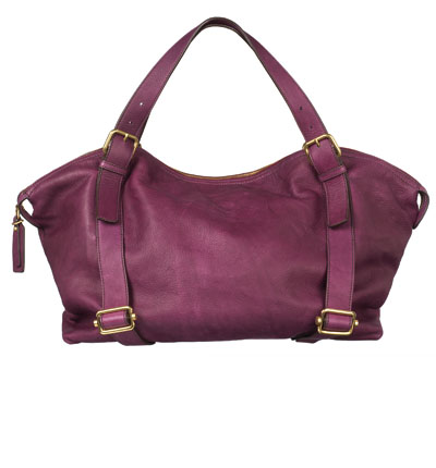 Escada Nomade Bag (Mauve) Completed with large brass buckles, this bag is a versatile creation. It can be worn with jeans or dressed up with formal wear. www.escada.com